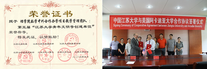 与美国阿卡迪亚大学合作举办数学与应用数学专业本科教育项目,经教育部批准(批准书编号: MOE32US2A20121231N),该专业招生方式为纳入国家普通高等教育招生计划,参加全国普通高等学校统一入学考试。该专业自2012年起正式招生,旨在培养拥有扎实的数学和经济学理论基础和借助数学、金融、计算机技术解决实际问题能力,具有国际视野、通晓国际规则的高级专门人才。
