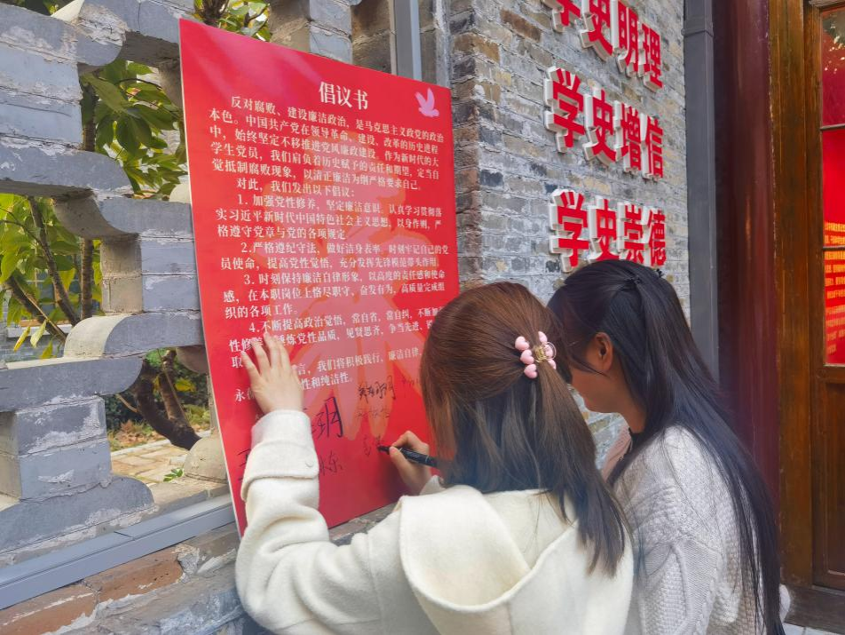 参观结束后,23级研究生党支部书记张朝晟带领党员同志们签署党员廉洁自律倡议书,并强调要深入学习贯彻习近平总书记91成人