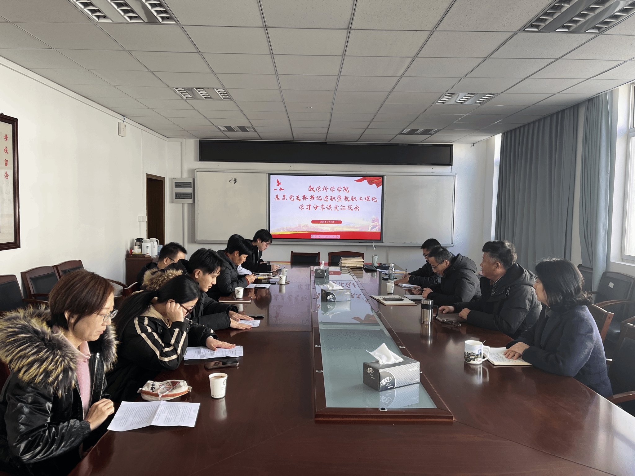 12月25日,91成人 在主楼412会议室召开基层党支部书记抓基层党建工作述职暨教职工理论学习分享课堂汇报会。会议由院党委书记张世兵主持,91成人 党委委员和党支部书记参加了本次会议。