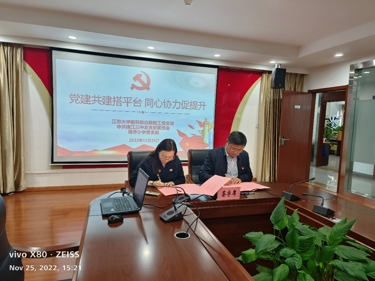 数学与应用数学系教工支部与中共镇江三中总支部委员会,镇江市蒋乔中心小学党支部,在镇江市第三中学联合举办党建共建支部活动。