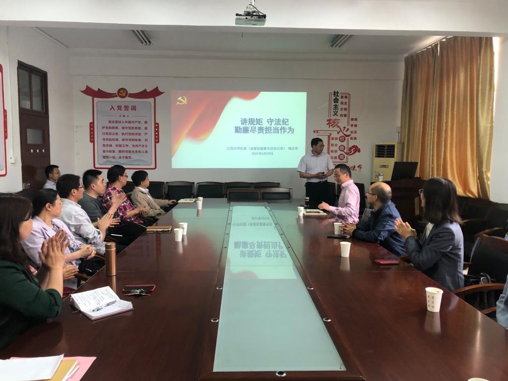 杨志春以《讲规矩 守法纪 勤廉尽责担当作为》为题,从“习近平总书记谈纪律规矩”、“增强纪法意识,保持心中的敬畏感”、“加强防范风险,提升治理能力与水平”,“坚持勤廉尽责,推进事业高质量发展”等四个方面,结合实际工作中的典型案例,向在场的老师们进行了警示教育,要求老师们一定要坚守法律底线,知敬畏、存戒惧、守底线,内化于心,认真贯彻落实习近平总书记对我校事业发展的重要批示精神,要求领导干部要廉洁从政、教师们要廉洁从教,一体推进“不敢腐”、“不能腐”、“不想腐”,共同营造风清气正的政治生态和良好的干事创业环境。