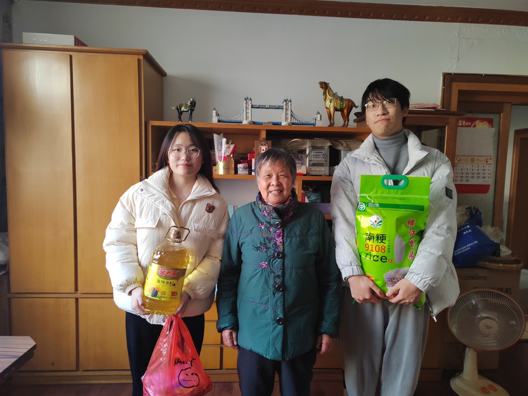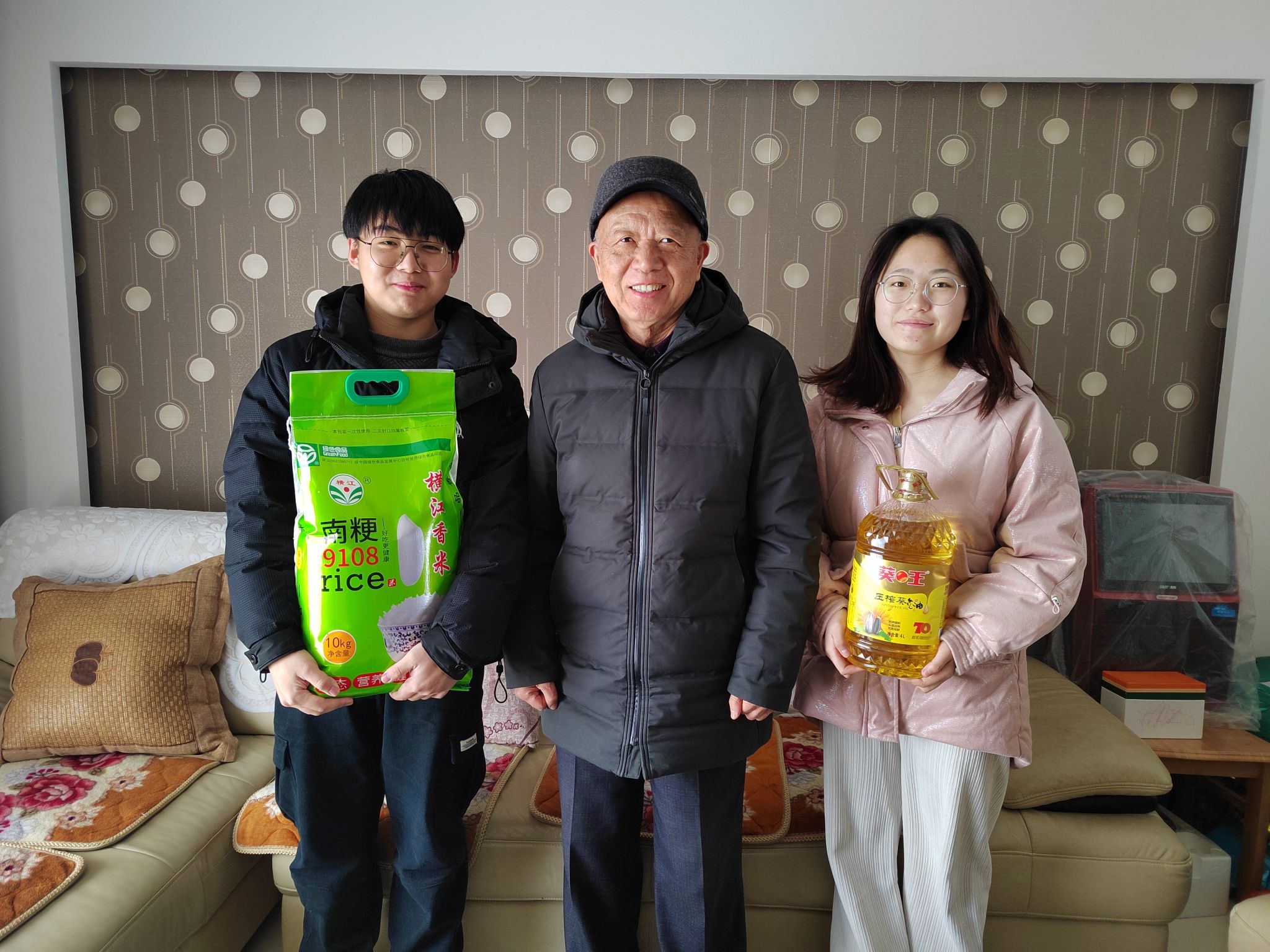 师生代表把学校关工委发给老教师的慰问品送到家中。尹老师向老教师们汇报了91成人