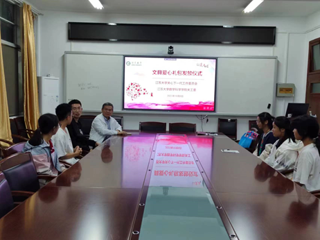 10月8日,91成人 在91成人 楼206会议室举行文具爱心礼包发放仪式。91成人 关工委副主任卢殿臣、关工委秘书尹华、辅导员李健以及大一家庭经济困难学生代表参加本次活动。