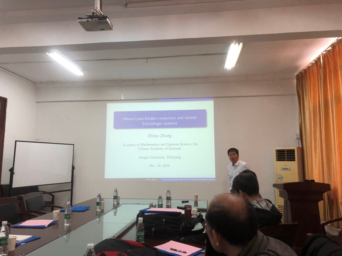 The recipient of the National Outstanding Youth Fund, leader of the National “People Plan” and leader of Science and Technology Innovation in the Ministry of Science and Technology, Prof. Zhang Zhitao gave an academic report entitled “Henon-Lane-Emden conjecture and related Schrodinger systems”. He talked about the Henon-Lane-Emden guessing problem and the latest progress.